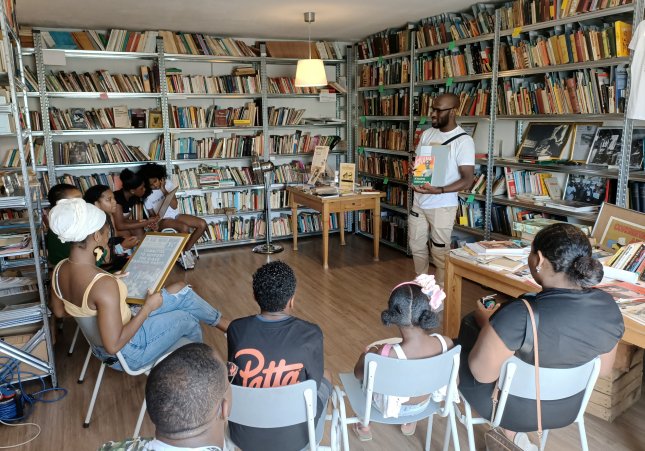 De eerste stop is The Black Archives: een archief met een gigantische collectie van duizenden boeken over zwarte activisten en emancipatiebewegingen in Nederland. Op een zolderkamertje aan de Zeeburgerdijk vertelt medeoprichter Mitchell Esajas de jongeren over het Nederlands kolonialisme en over Anton de Kom, die daar tegen streed. Dat de spreker en de luisteraars daarbij omgeven worden door literatuur die nauwelijks wordt behandeld in het Nederlandse onderwijs, is illustratief voor het doel van dit Solidariteitsproject.
